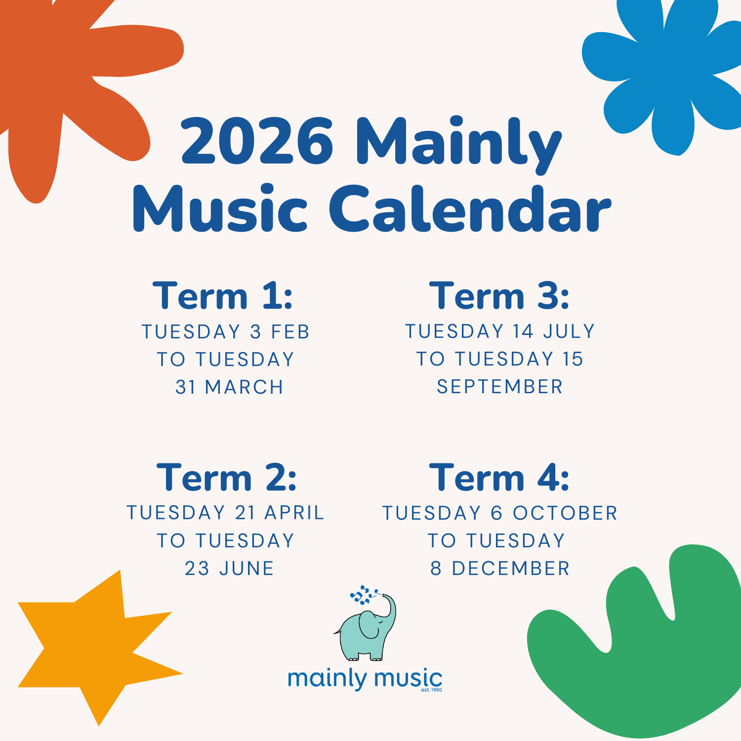 Mainly Music runs through out the year on Tuesdays from 9:30am - 11:00am during the school term. It costs $5 per family with your first session free! No need to book - just come along.
